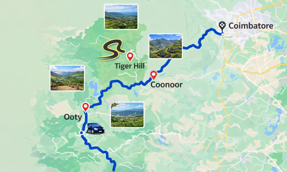 - Route: Chennai → Salem → Mettupalayam → Ooty